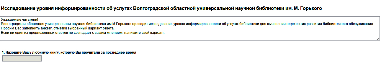 Исследование, которое продолжается до сих пор, радует тем, что респонденты отвечают на все обязательные вопросы (в отличии от бумажного анкетирования, где по ряду причин не все ответы присутствуют).
