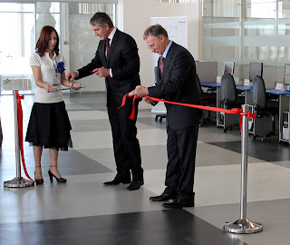 Торжественное разрезание красной ленточки и обмен электронными коллекциями